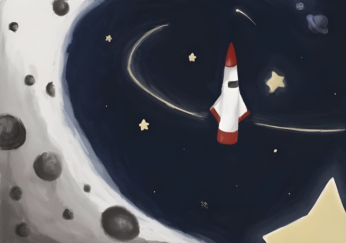 A brave rocket drifts through the endless night, exploring worlds that have never been seen.